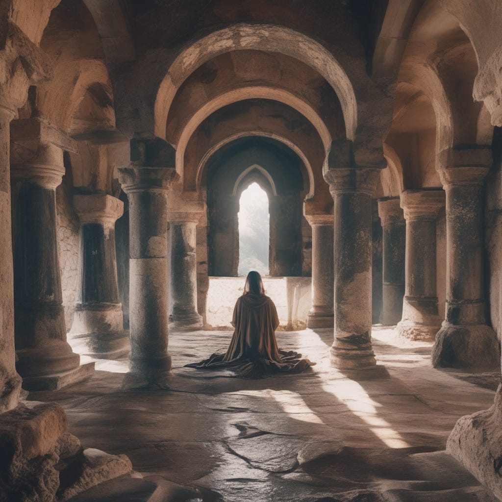A powerful image of the 3 AM seekerāon their knees in darkness, but surrounded by divine light. The warrior rising in victory. The cross. The lion. And above it all: